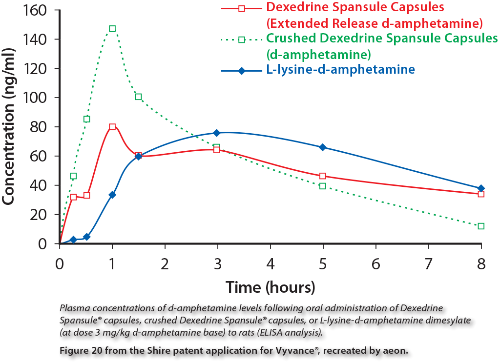 >>109623650That's what I mean with the graph. First hour and a half on Adderall are very high dosage compared to the remaining 8 hours, by hour 3 you're already at half the peak. However, when people describe the effects to their doctors they're generally talking about how useful it is throughout those 8 hours, and if they say the effects seem too weak then the doctor will up the dosage (i.e. the dosage isn't calibrated to the peak).Adderall and Vyvanse are basically the same thing except Vyvanse only gets converted into the active chemical inside the body while Adderall is already the active chemical. It's a bit like the difference between eating a spoon full of sugar vs eating a loaf of bread (the bread carbs will get converted into sugar inside the body and also raise blood glucose levels, but it will take longer and you won't get a sugar high).