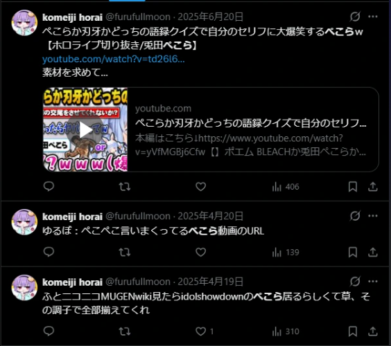 https://imgur.com/a/wxNkWHShttps://x.com/i/status/2024460125336174696Infamous hololive anti @enjuouka who spend the last 3 months shitting on Miko and holo in general while pretending to be a heimin and are in the same discord group as the AI drama clipper who is being sued have been doxxed as a former nousagi.The retard used the same account name for his mobile games that he tweeted from multiple twitter accounts.His personal twitter account has since been privated, while his main is currently still active spreading slander and malicious rumours.