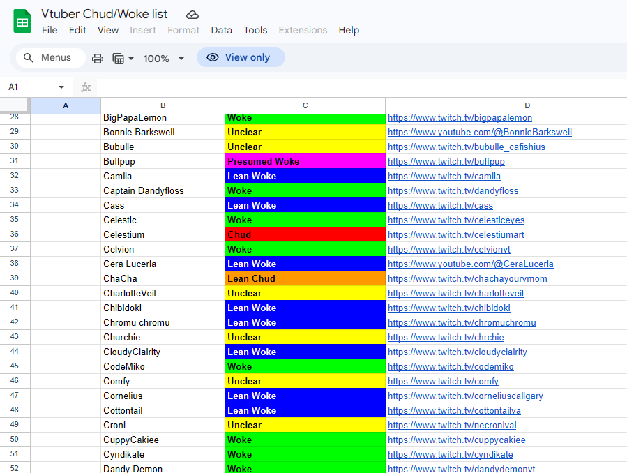 >>109638512Now this is the gayest list I've ever seen. 90% of chuubas are basically apolitical moeblobs that at most just talk about their personal lives.
