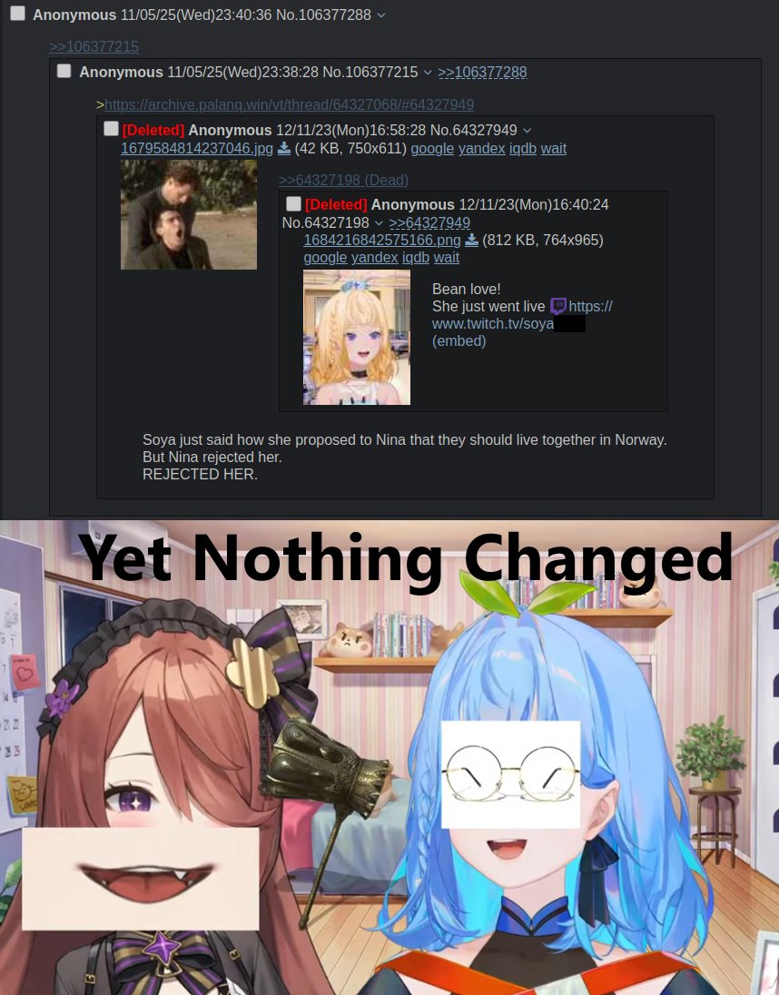 >>109642665Because they see them as a tsundere couple, they absolutely love that shit. They don’t want streams either or they would know that they haven’t had a meaningful interaction in like 3-4 years.