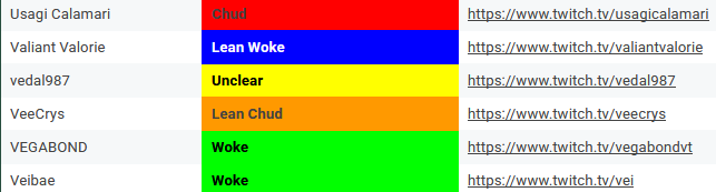 >>109655365>>109655722What is this shit lmao? Searched up and on some chud forum the reasons to designate someone a conservative were:>Not blacklisting Pippa(?) and Filian(???)>Being raised in Texas and playing RDR>Being Polish>Being Italian(???)>Having a sense of humor, apparently