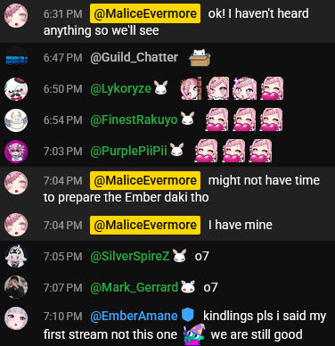 >>109659997The only reason I'm not chatting tonight is because I'm working on improving at something, and that I'm saving my energy for Uruka's outfit debut tomorrow.