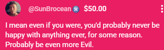 >>109658489>Pussyfucker69 has donoed $30"How that Gumbussy taste like?"
