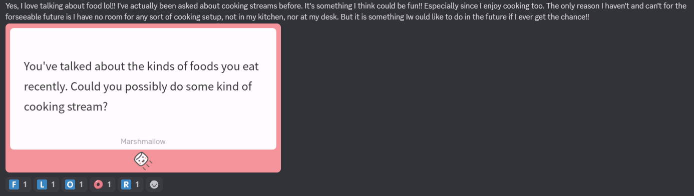 >>109669811Anon... we pans send nice maros when raki is busy and she appreciates it