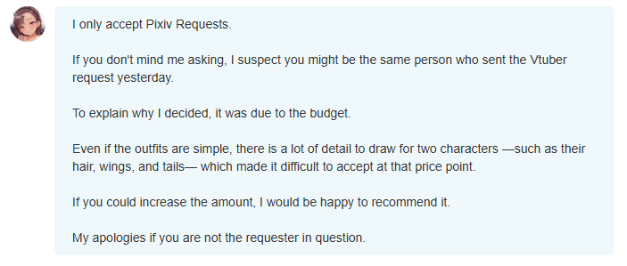 >>109691163>>109691163interesting, the base price for requests is 9k yen and the one I submitted was 15k. I wonder if 20k would be more in line?