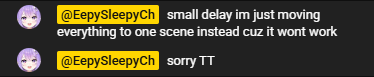 >>109679022Last minute OBS instability broke all of the transitions and graphics she was planning to use.