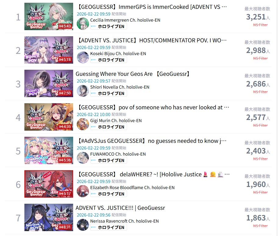>Shiori won 1st round>Each Advent is 1 rank higher than Each Justice, 1:2, 3:4, 5:6>Advent have higher overall than Justice>Justice practiced>Anons here Praised Erb and downplayed Nerissa