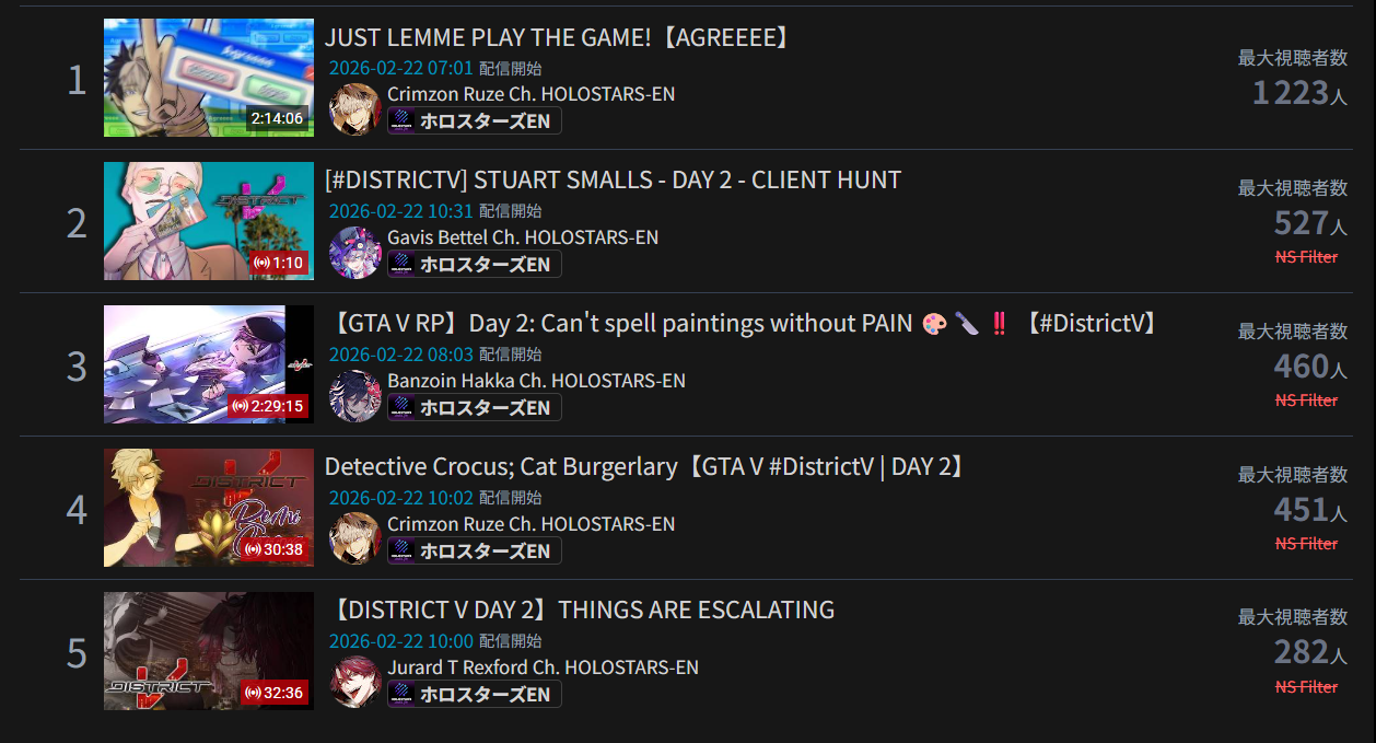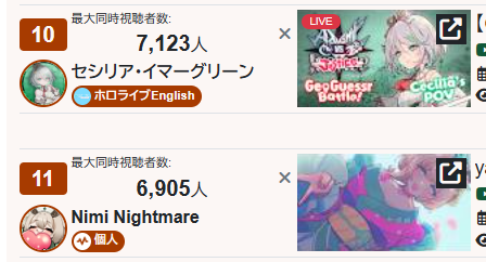 *GENERAL NUMBERFAG SITES*>https://playboard.co/en/>http://ikioi-ranking.com/>https://vrabi.net/>https://live-ranking.userlocal.jp/vtuber-rankingHololive sites>https://www.hololyzer.net/youtube/index.html>https://trackholo.live/en/>https://holo-spotify-stats.jirikunes.eu/Twitch>https://sullygnome.com/>https://twitchtracker.com/>https://stats.roki.sh/>https://streamscharts.com/