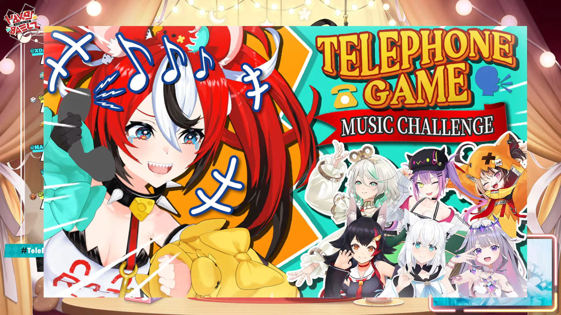 >Telephone game>Offcollab>Tomorrow (12pm JST, 4am CET)>Music challenge>Everyone will have music blasting and they will have to read lipsHorrendous time, but interesting idea