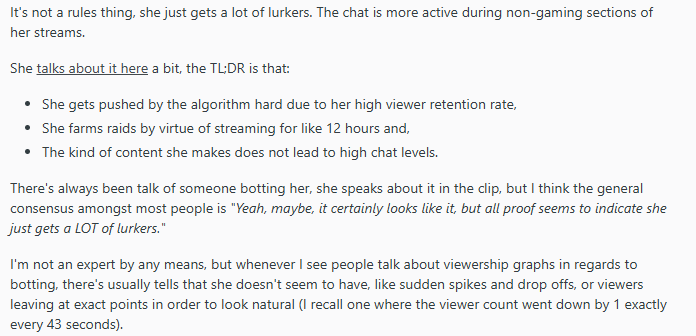 >>109712947Nah Nimibotter botted her to compensate for people fucking off during the LLD. Gave up on botting during the summer because YouTube was culling his bots so hard she was getting mogged by Kaela and Kobo. Then started botting her even harder in January.