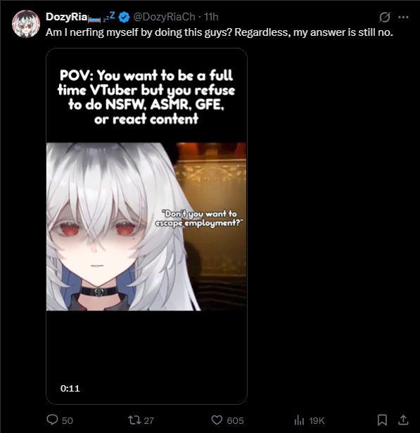 >>109712894Management prevented her from streaming and releasing projects