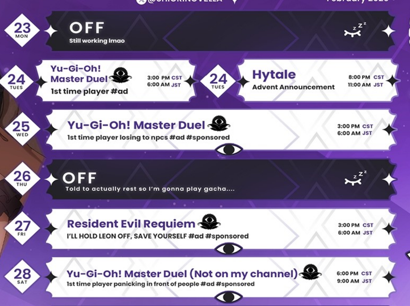 >>109713229>Capcom sponsorshipI hope this means there won't be any dumb shit like age restricting the stream or having to hide puzzles.
