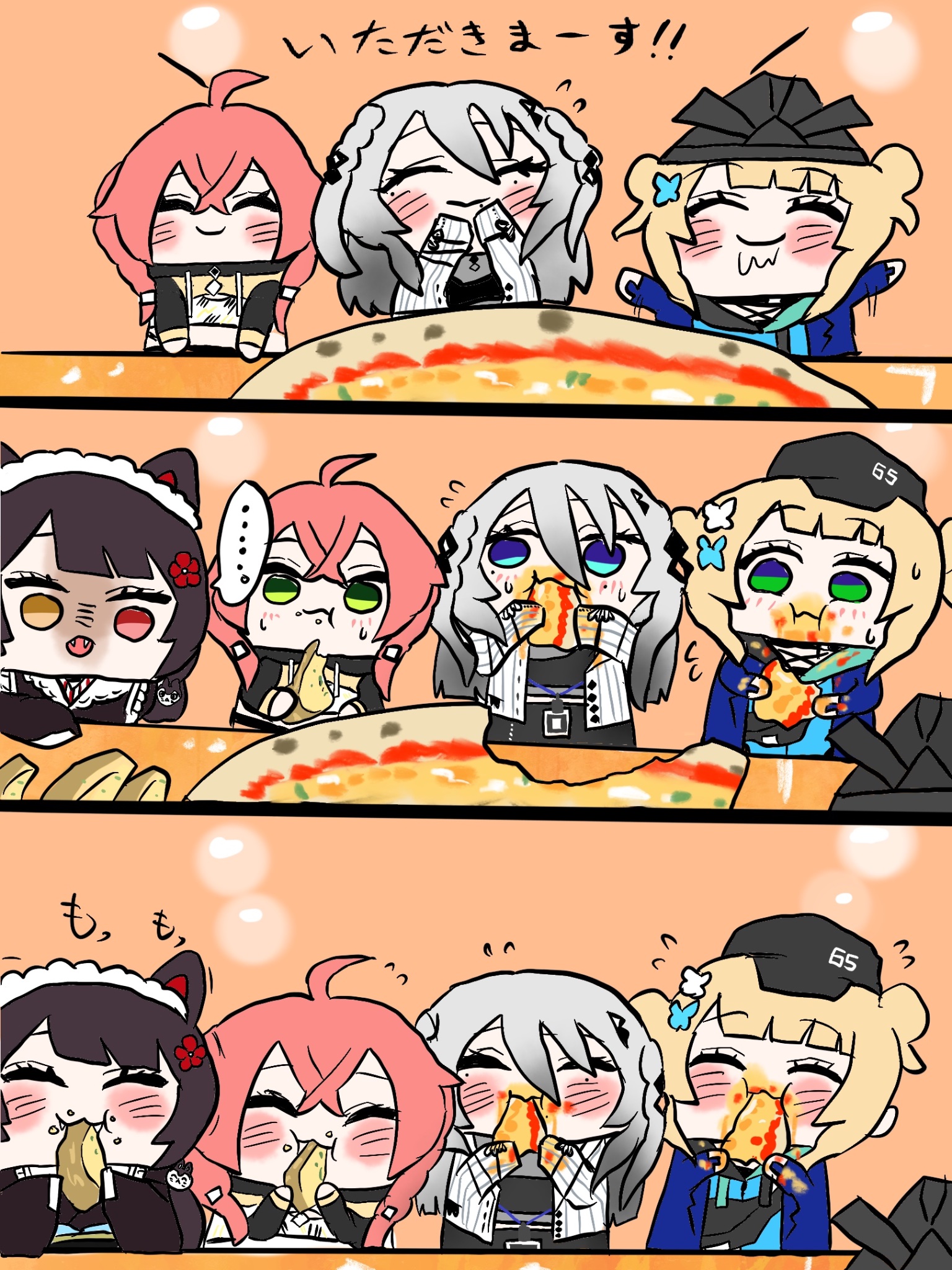 Way too cute of a gathering of girls eating hot food