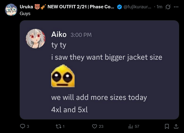 >>109712989nta but isn't that where the whole 4xlKnight meme came from? Because they had to add a 4xl size to her merch to accomodate her fans