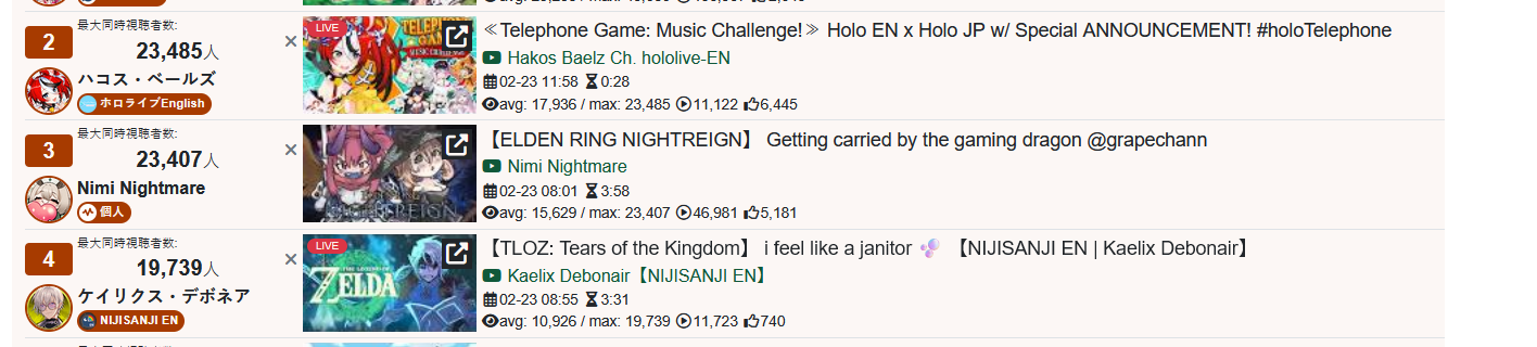 *GENERAL NUMBERFAG SITES*>https://playboard.co/en/>http://ikioi-ranking.com/>https://vrabi.net/>https://live-ranking.userlocal.jp/vtuber-rankingHololive sites>https://www.hololyzer.net/youtube/index.html>https://trackholo.live/en/>https://holo-spotify-stats.jirikunes.eu/Twitch>https://sullygnome.com/>https://twitchtracker.com/>https://stats.roki.sh/>https://streamscharts.com/