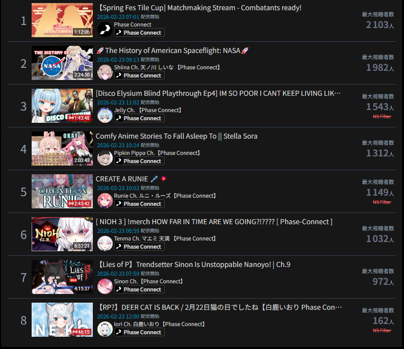 >>109720025Or the fanbases of Phase and Niji