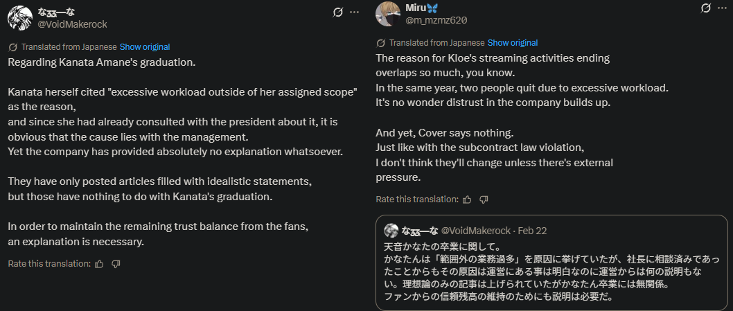 >being proud of Cover botting holoEN>ignoring the systematic issues like the abuse of subcontractors and overworking of talents that Cover has STILL not addressed