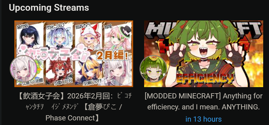 ▼ Phase Connect LinksOfficial Website: https://phase-connect.comOfficial Schedule: https://schedule.phase-connect.comOfficial Twitter: https://x.com/PhaseConnect | https://x.com/PhaseConnectJPOfficial Character References: https://rentry.org/pcgreferencesOfficial Twitch Archive Channels: https://rentry.org/pcgtwitcharchiveUnofficial Phase Connect Archives: https://rentry.org/pcgunofficialarchive––––––––––––––––––––––––––––––––––◆【Lia】https://x.com/rinkouashelia | https://youtube.com/RinkouAshelia | https://twitch.tv/asheliarinkou◆【Utatane Nasa】転寝ナサ (JP) https://x.com/UtataneNasa | https://youtube.com/UtataneNasa | https://twitch.tv/utatanenasa◆【Hakushika Iori】白鹿いおり (JP + EN) https://x.com/hakushikaiori | https://youtube.com/HakushikaIori | https://twitch.tv/iorihakushika◆【Fujikura Uruka】https://x.com/fujikurauruka | https://youtube.com/FujikuraUruka | https://twitch.tv/fujikurauruka◆【Shisui Michiru】紫翠みちる (JP) https://x.com/shisuimichiru | https://youtube.com/ShisuiMichiru | https://twitch.tv/michiru_shisui◆【Tenma Maemi】https://x.com/tenmamaemi | https://youtube.com/TenmaMaemi | https://twitch.tv/tenma◆【Pipkin Pippa】https://x.com/pipkinpippa | https://youtube.com/PipkinPippa | https://twitch.tv/pippa––––––––––––––––––––––––––––––––––◆【Kaneko Lumi】https://x.com/kaneko_lumi | https://youtube.com/KanekoLumi | https://twitch.tv/kanekolumi◆【Fuura Yuri】[Terminated] https://x.com/AmarisYuri | Archive: https://youtube.com/@TheNationalFuuraYuriArchive◆【Dizzy Dokuro】https://x.com/dizzydokuro | https://youtube.com/@dizzydokuro | https://twitch.tv/dizzydokuro◆【Jelly Hoshiumi】https://x.com/jellyhoshiumi | https://youtube.com/@jellyhoshiumi | https://twitch.tv/jellyhoshiumi◆【Ember Amane】https://x.com/emberamane | https://youtube.com/@EmberAmane | https://twitch.tv/emberamane◆【Clio Aite】https://x.com/ClioAite | https://youtube.com/@ClioAite | https://twitch.tv/clioaite◆【MariMari_en】https://x.com/MARIMARI_EN | https://youtube.com/@MARIMARI_EN | https://twitch.tv/marimari_en◆【Eepy Sleepy】https://x.com/EepySleepyCh | https://www.youtube.com/@EepySleepyCh | https://twitch.tv/EepySleepyCh––––––––––––––––––––––––––––––––––◆【Remilia Nephys】https://x.com/Remilia_Nephys | https://youtube.com/RemiliaNephys | https://twitch.tv/remilianephys◆【Chisaka Airi】https://x.com/ChisakaAiri | https://youtube.com/ChisakaAiri | https://twitch.tv/chisakaairi◆【Amanogawa Shiina】https://x.com/AmanogawaShiina | https://youtube.com/AmanogawaShiina | https://twitch.tv/amanogawashiina◆【Himemiya Rie】https://x.com/HimemiyaRie | https://youtube.com/HimemiyaRie | https://twitch.tv/himemiyarie◆【Erina Makina】https://x.com/ErinaMakina | https://youtube.com/ErinaMakina | https://twitch.tv/erinamakina◆【Komachi Panko】https://x.com/komachipanko | https://youtube.com/KomachiPanko | https://twitch.tv/komachipanko––––––––––––––––––––––––––––––––––◆【Runie Ruse】https://x.com/RunieRuse | https://youtube.com/@RunieRuse | https://twitch.tv/RunieRuse◆【Eimi Isami】https://x.com/eimiisami | https://youtube.com/@eimiisami | https://twitch.tv/eimiisami◆【Muu Muyu】https://x.com/Muu_Muyu | https://youtube.com/@MuuMuyu | https://twitch.tv/MuuMuyu◆【Hikanari Hina】https://x.com/HikanariHina | https://youtube.com/@HikanariHina | https://twitch.tv/HikanariHina◆【Saya Sairroxs】[Graduated] https://x.com/sayasairroxs | https://youtube.com/@sayasairroxs | https://twitch.tv/sayasairroxs––––––––––––––––––––––––––––––––––◆【Kannagi Loki】巫ロキ (JP) https://x.com/kannagiloki | https://youtube.com/@kannagiloki◆【Kokoromo Memory】[Graduated] https://x.com/kokoromomemory | https://youtube.com/@kokoromomemory_ | https://twitch.tv/kokoromomemory◆【Gram Pico】倉夢ぴこ (JP) https://x.com/grampico_ | https://youtube.com/@grampico | https://twitch.tv/grampico◆【Ayase Yuu】絢世ユウ (JP) https://x.com/ayaseyuuu | https://youtube.com/@ayaseyuu | https://twitch.tv/ayaseyuu_◆【Kaminari Clara】歌美鳴クララ (EN + JP) https://x.com/kaminariclara_ | https://youtube.com/@kaminariclara | https://twitch.tv/kaminariclara––––––––––––––––––––––––––––––––––◆【Malice Evermore】https://x.com/MaliceEvermore | https://www.youtube.com/@maliceevermore | https://www.twitch.tv/maliceevermore◆【Nitya Nil】https://x.com/Nitya_Nil | https://www.youtube.com/@Nitya_Nil | https://www.twitch.tv/nitya_nil◆【Wilhelmina Frost】https://x.com/wilhelminafr0st | https://www.youtube.com/@wilhelminafrost | https://www.twitch.tv/wilhelminafrost◆【Bibi Biscuit】https://x.com/BibiBiscuitCh | https://www.youtube.com/@bibibiscuitch | https://www.twitch.tv/bibibiscuitch◆【Anya Nyabyss】https://x.com/AnyaNyabyss | https://www.youtube.com/@AnyaNyabyss | https://www.twitch.tv/anyanyabyss◆【Sinon Sinfonia】https://x.com/SinonSinfonia | https://www.youtube.com/@SinonSinfonia | https://www.twitch.tv/sinonsinfoniaPrevious Thread: >>109712675