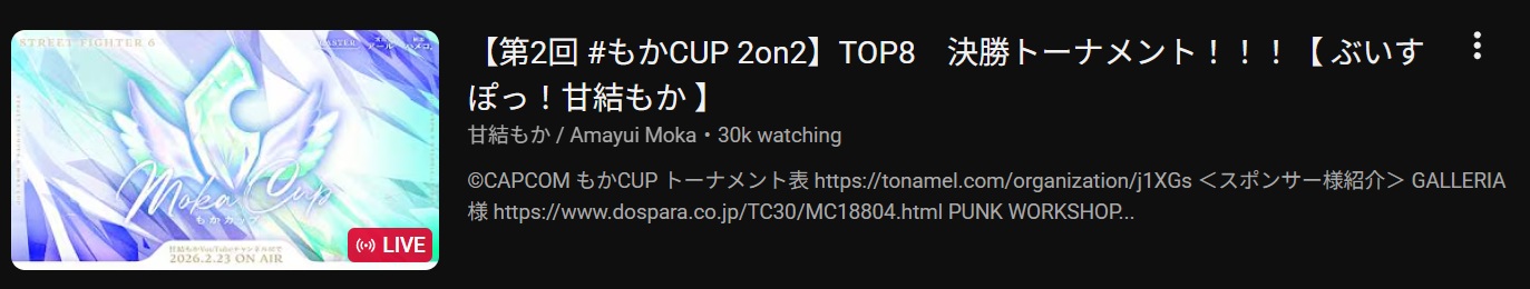 >>109725487better prize + better event organization this year.So many pros participating and all the 1800MR+ as well. Doesn't need much advertisement unlike ShishiroCup (where she needs to invite pros).The people who plays SF6 competitively already know. It's the same gang that participate in weekly (?) TakeraCup and scarzCup whatever is out there.Also one factor I assume it's because MokaCup is same day with VGGC so she doesn't want to bother if the fans want to skip an offline fes for online sf6 tournament