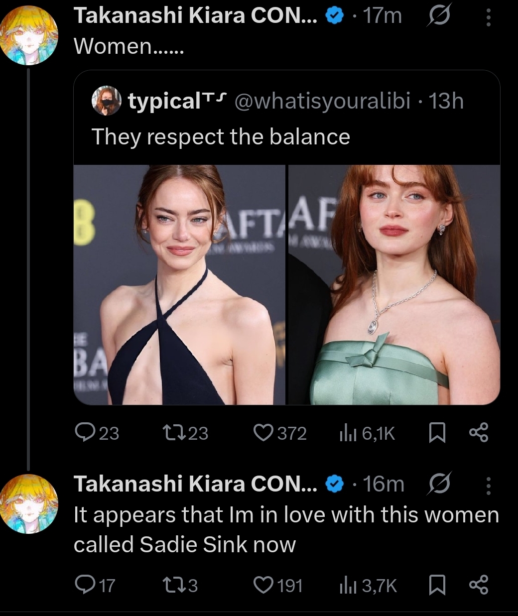 >>109724374Sana have to be seriously out of touch, no way they keep her updated about all the personal drama holos don't gossip about each other it's not the kind of people. As for Mumei I wanted to say she wasn't aware of everything either but there are reasons to think she visited Fauna in person and met with homos not just Vesper I can actually see Fauna convincing her to leave.