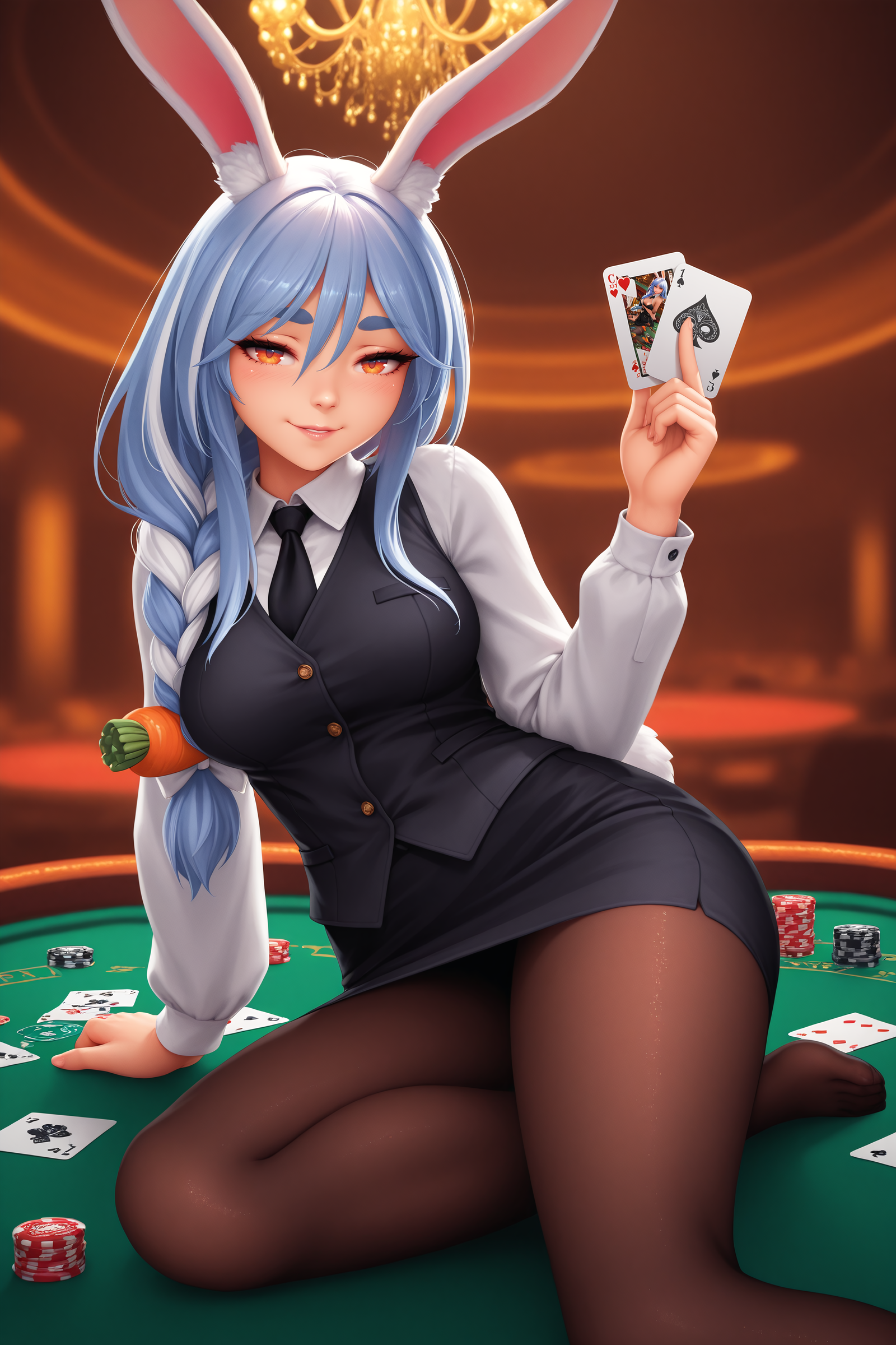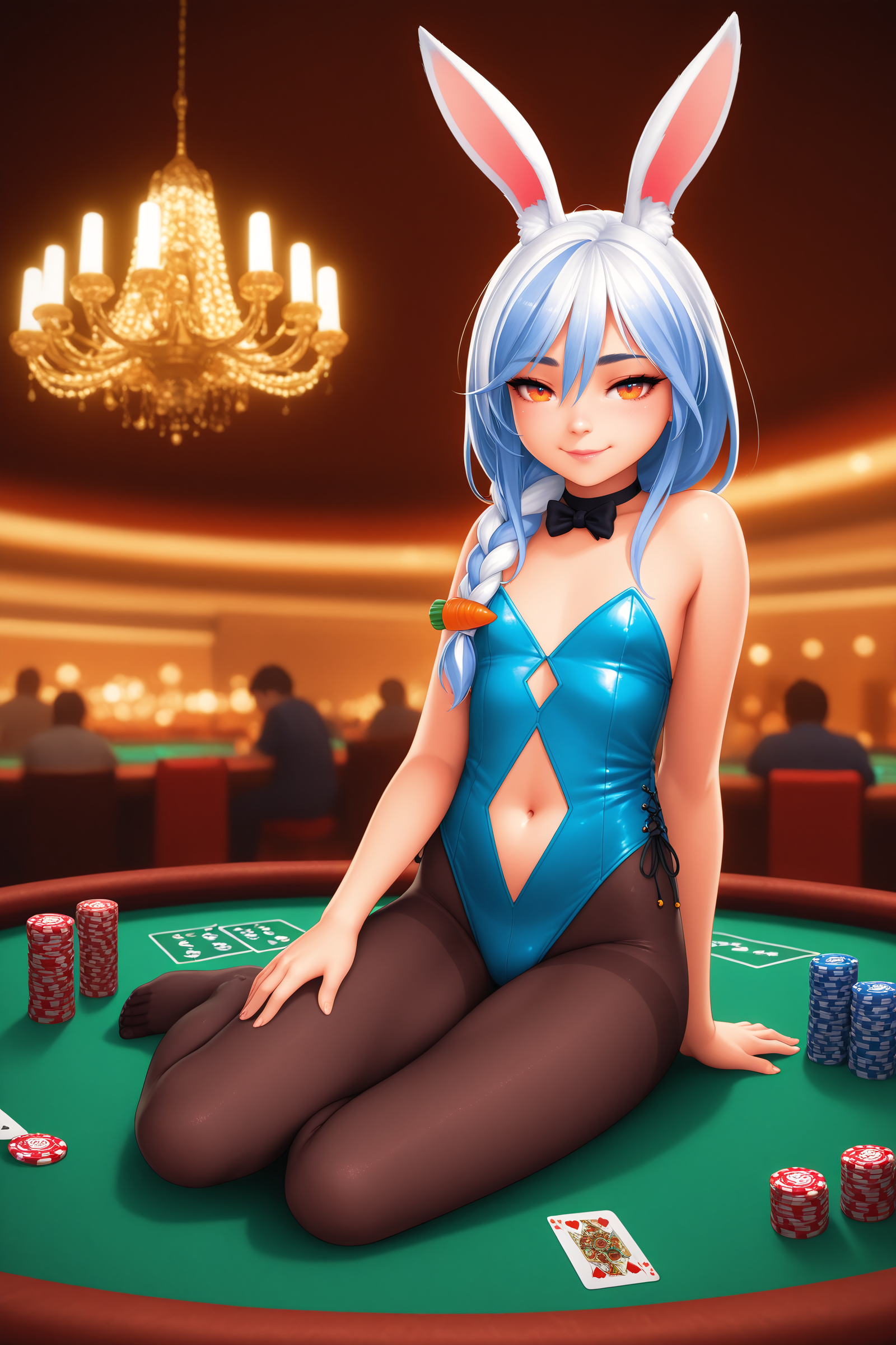 >>109729907Rerequesting regular outfit Pekora with puffy nipples and a somewhat loose bunnysuit bra cup, resulting in a nipslip. She notices you looking and pulls it down more, egging you to cum on her chest.