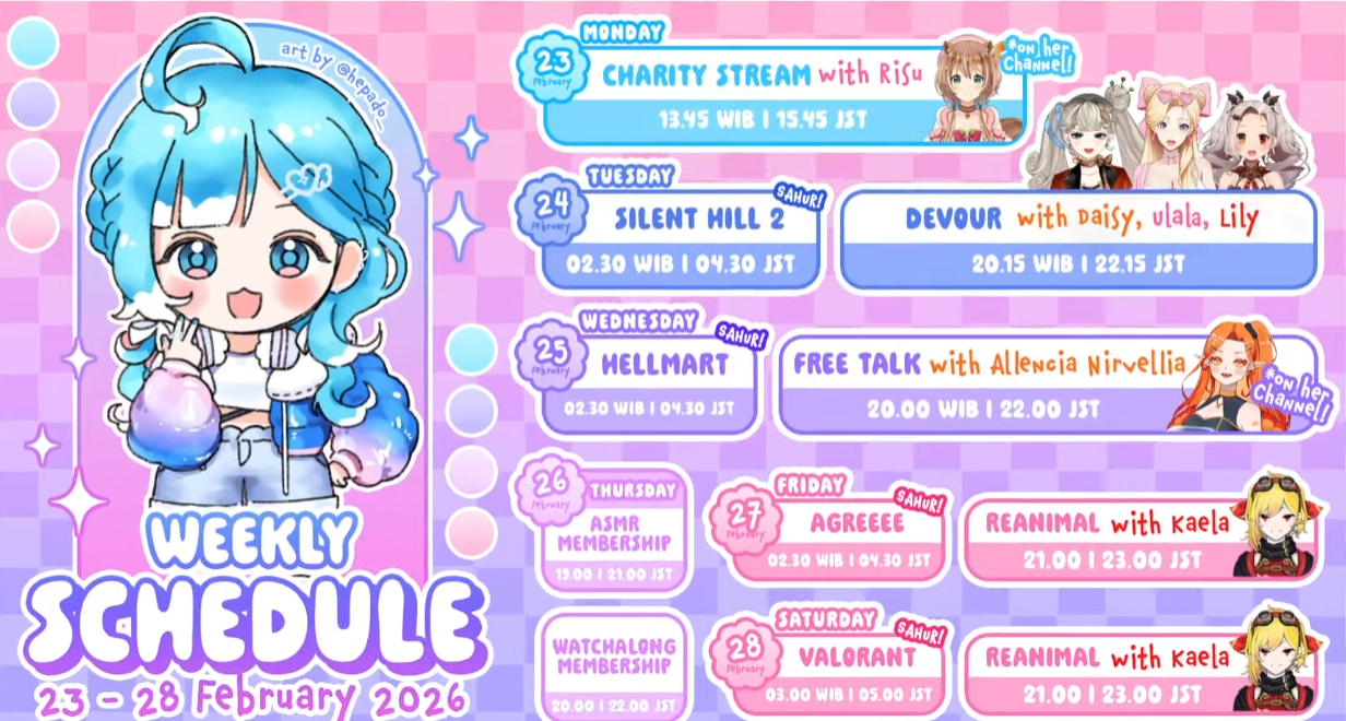 As in 11 streams in December, 11 streams in January. She already has 15 streams in February and and has another 7 streams (plus 2 membership streams plus 2 collabs on other channels) this week. That's a biiiiiig increase in activity right before holofes.