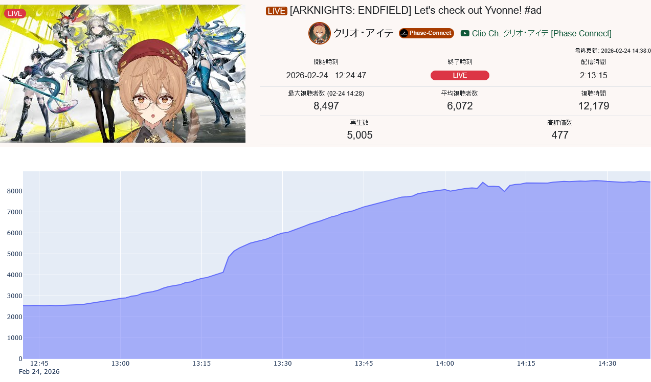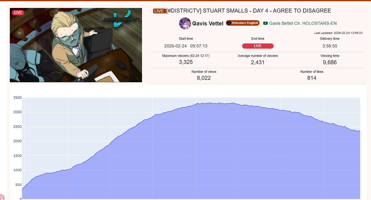 >>109742735Or even Nerissa stream, only 100 more likes for a stream that had a 9k higher peak and an hour and ten minute longer duration? Thats a fucking 3k stream bro.