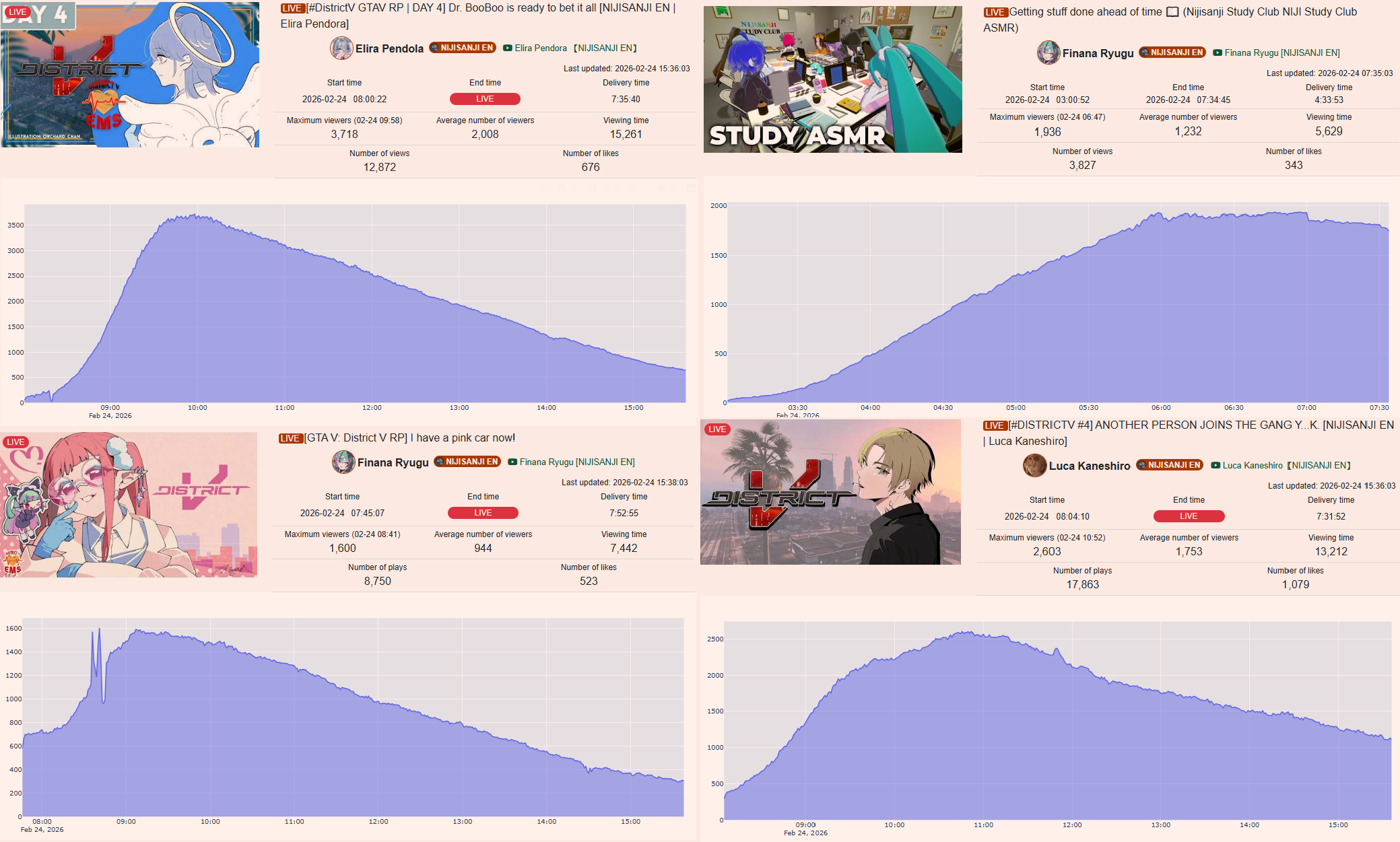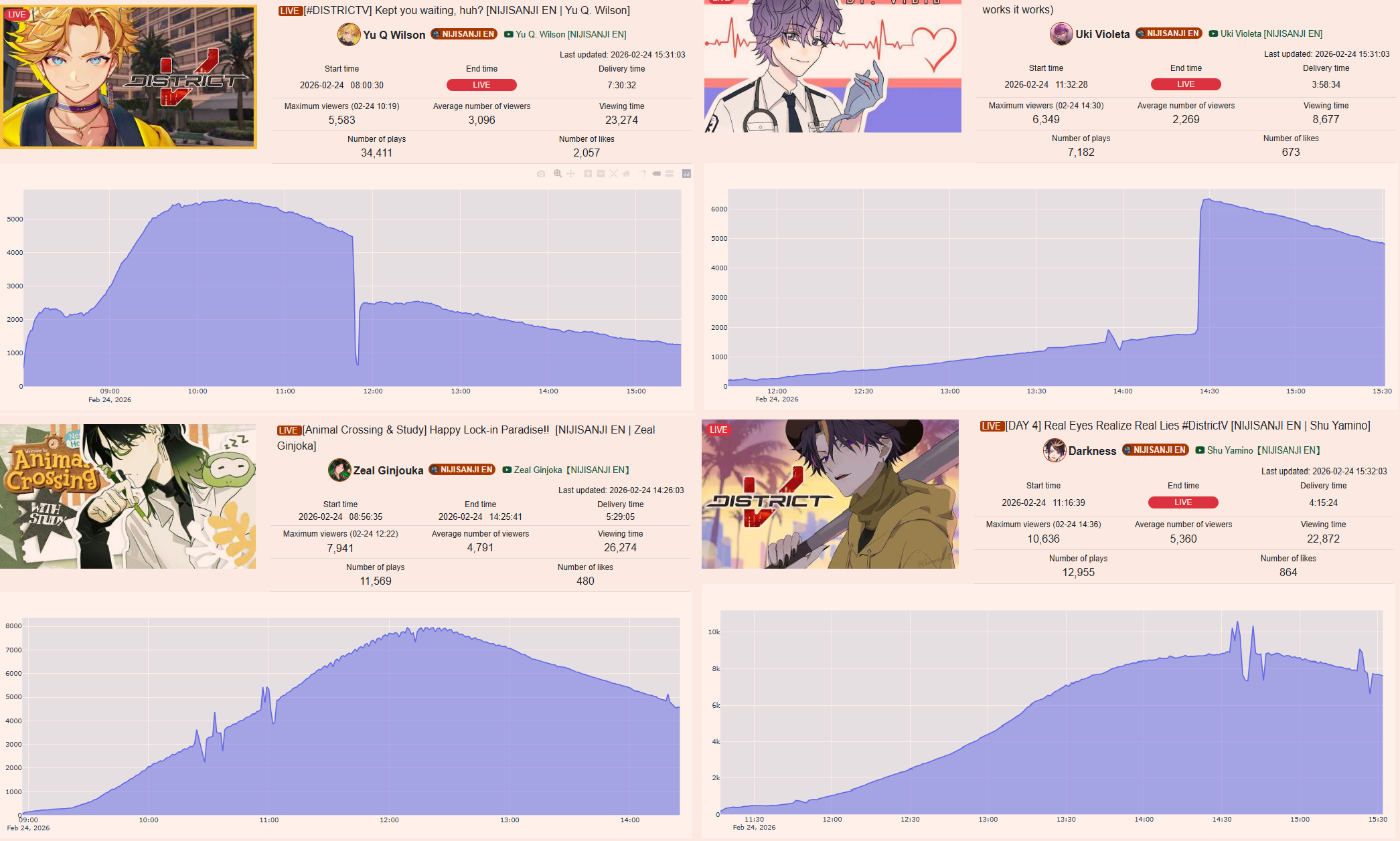 QRD on the current state of NijiEN>not a single member is over a 1k average aside from blatant JP speakers Shu and Meloco>all of the members are heavily botted, some of them don't have a single unbotted stream going back 6 months.>the only male members who average over 500 are Luca, Vox, Wilson, Kaelix, while Sonny and Vanta are borderline>the average male NijiEN member gets like 300-400 viewers>the girls are doing even worse, the most successful ones like Elira and Enna pander all their content to women>Enna gets like 600-800 and doesn't stream anymore, with serious graduation flags>Elira is so botted it's hard to know her true numbers, but it seems to be in the 400 range>Maria can get about 500, she lost less of her audience overtime because she speaks in partial japanese >the average NijiEN girl gets like 200-300 ccv, Millie is flirting with 2viewThese days most of the branch wouldn't even quality to be posted in /lig/ with the 500ccv rule.