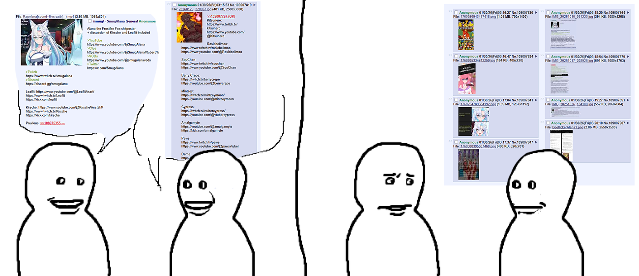 Alana the Frostfire Fox shitposter+ discussion of Kirsche and Leaflit included>YouTubehttps://www.youtube.com/@SmugAlana>Clipshttps://www.youtube.com/@SmugAlanaVtuberClips>VODshttps://www.youtube.com/@smugalanavods>Twitterhttps://x.com/SmugAlana>Twitchhttps://www.twitch.tv/smugalana>Discordhttps://discord.gg/smugalanaLeaflit: https://www.youtube.com/@LeaflitAsari/https://youtube.com/@slimecoreradiohttps://www.twitch.tv/Leaflithttps://kick.com/leaflitKirsche: https://www.youtube.com/@KirscheVerstahl/https://www.twitch.tv/Kirschehttps://kick.com/kirschePrevious: >>109722925
