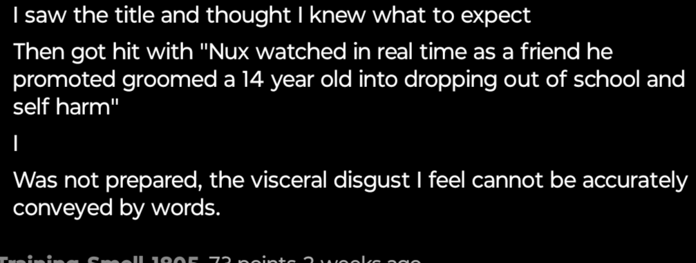 I lost respect for her when she constantly defended a myriad of awful behaviour by the vshojo scumThink about how many of us went to bat for her when Chinese schizos were attacking herAnd then we find out she was working for a guy paying trolls and shills to harass other companies and fanbasesAnd she didn't say shit about it