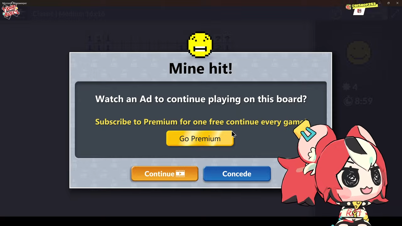 >>109812704Is that actual Microsoft Minesweeper offering to watch adds or buy premium???
