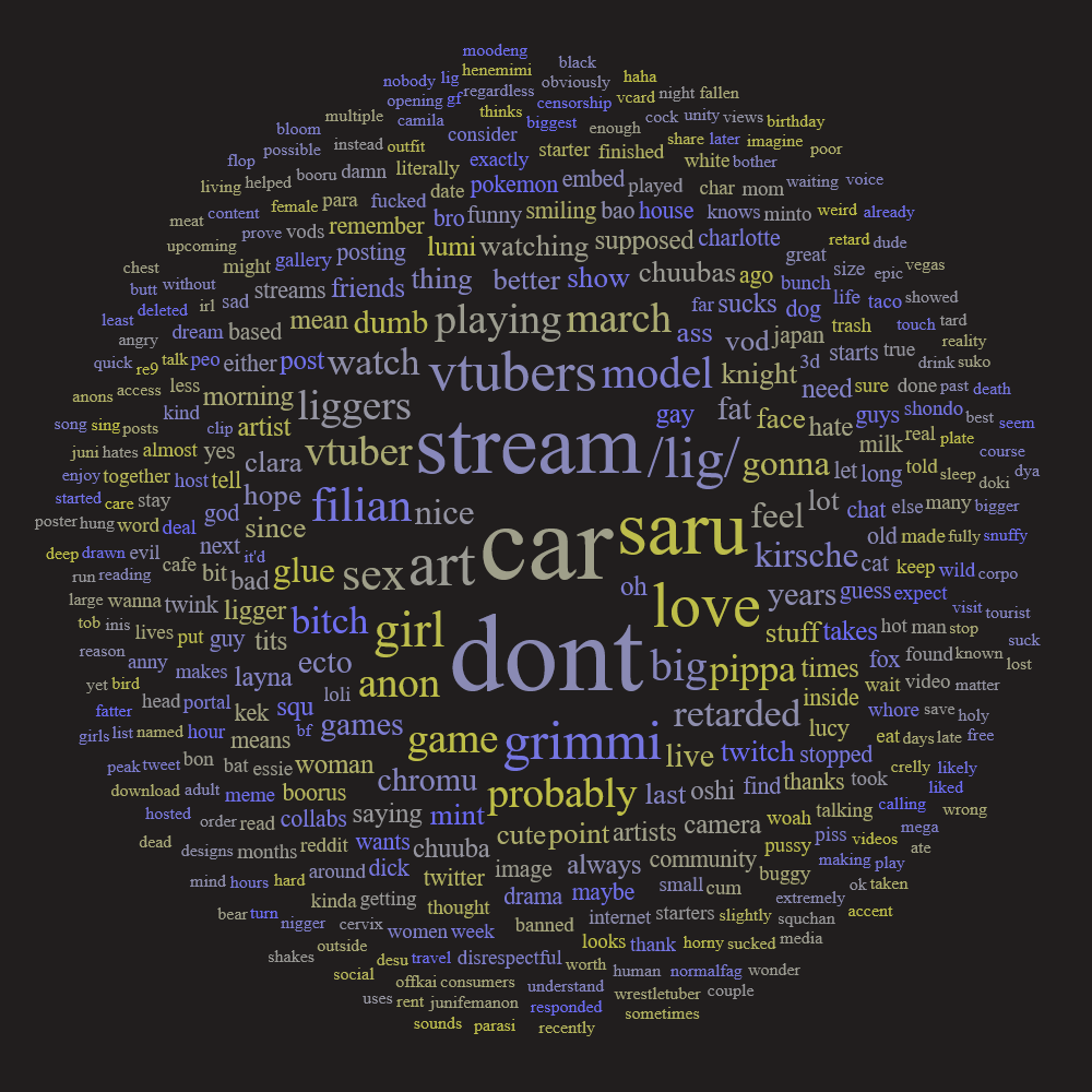 >>109827247>>109827281naw it's just sensitive faggots chimping out over either criticism of their oshi or chimping out over seeing the name of a ligger they hate it's never justified