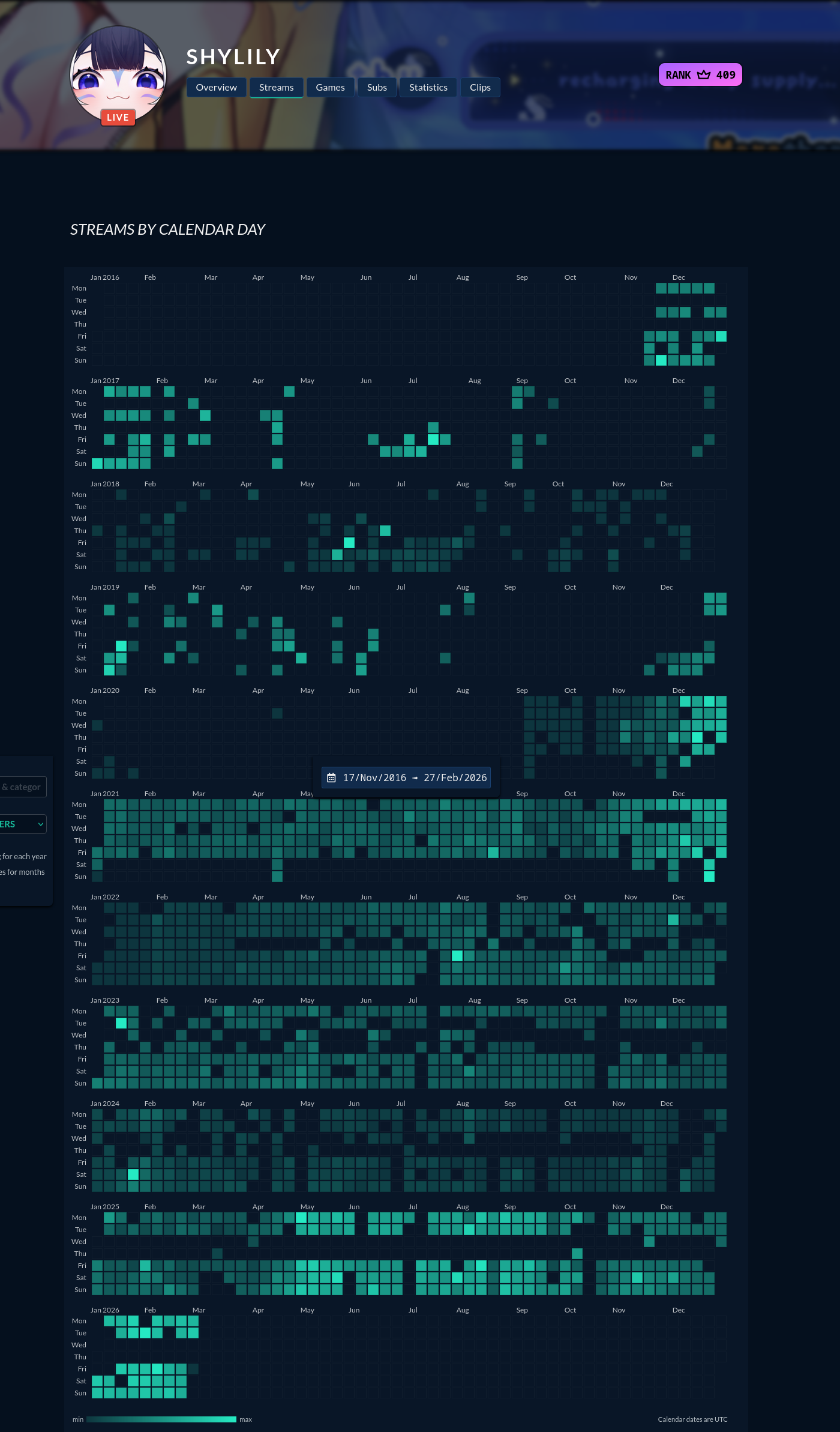 Pinis Edition>What is /lig/?/lig/ is a thread for viewers to find, share, and discuss indie vtubers who have on average 500 viewers or more.>Why /lig/?Large indie vtubers have more net fans, but they are outnumbered by 2views by the thousands. This is a thread for the VIP, regardless of what language they stream on.>Can I shill my 499view oshi here?Considering averages fluctuate widely, all the way down to 100 is reasonable. The minimal requirement however is being Twitch partner or the YouTube equivalent in numbers.>Wait isn't that one a corpo?/lig/ is a thread for chuubas of a decent size who aren't defined by their corporate branding, either due to the small size of the corporation or the independence and lack of oversight granted to the talents>/lig/ Numbershttps://lignumbers.neocities.org/>Twitch Clips Guidehttps://pastelink.net/34vd5>VOD Archival Guidehttps://rentry.org/Vod_Archival_Guide>/lig/ VOD Archivehttps://rentry.org/Indie_Vod_Archives_lig_>Koikatsu cardshttps://mega.nz/folder/JYtkXJwL#07gAQCQqI_9FsmX9oQJKSA>/lig/ Wheel of Nameshttps://wheelofnames.com/5jh-93j>Tiermakerhttps://tiermaker.com/create/-lig--16586688-3>/lig/ Chuuba Birthday Calendar (WIP)https://www.canva.com/design/DAE-XgWodVg/ofLz4QC1yPPQ4T6TTAE0fw/edit?utm_content=DAE-XgWodVg>Upcoming BirthdaysFebruary 27th - AsariMarch 6th - Lucy Pyre & Fuzuki MikiMarch 9th - SavehymnMarch 12th - Anya Melfissa & Haruka KaribuMarch 15th - HenemimiMarch 17th - SukoMarch 20th - ShirahikoMarch 25th - Rokoko PrufeiMarch 26th - Michi MochieveeMarch 28th - CyphiMarch 31st - Nina Saotome>OC material for the OPhttps://mega.nz/folder/IIVD1IaJ#cfsRhWdJvzneIoG8HZUPuw>/lig/booruhttps://ligbooru.moe/>Duckshttps://www.twitch.tv/dashducks (embed) (embed) (embed) (embed)Other useful threads:>>>/vt//big/>>>/vt//corpo/>>>/vt//choc/>>>/vt//flip/>>>/vt//haha/>>>/vt//indie/>>>/vt//mint/>>>/vt//swarm/>>>/vt//vrt/>>>/vt//xvsj+/Previous Thread: >>109819446