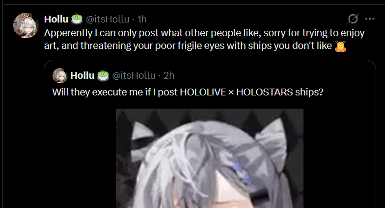 >>109826969>tweet some VesperoniiYou're gonna rile up THREE whole fanbases at the same time, anon, yamero!