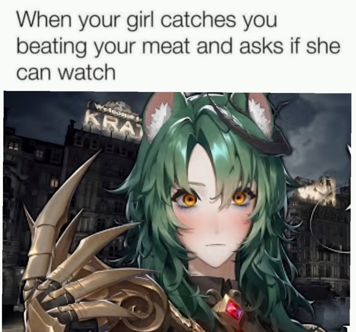 >>109830752blushing and wide eyed doesn't really mean crazy eyed. And the claw is a replacement for her hand. So just imagine the handjobs, or prostate tickling.