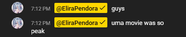 https://x.com/EliraPendora/status/2027779377715458120Elira is losing it.>>109853118It matches the outfit Elira had for the beach party thing they did yesterday on the server so I got it was her fairly easily.