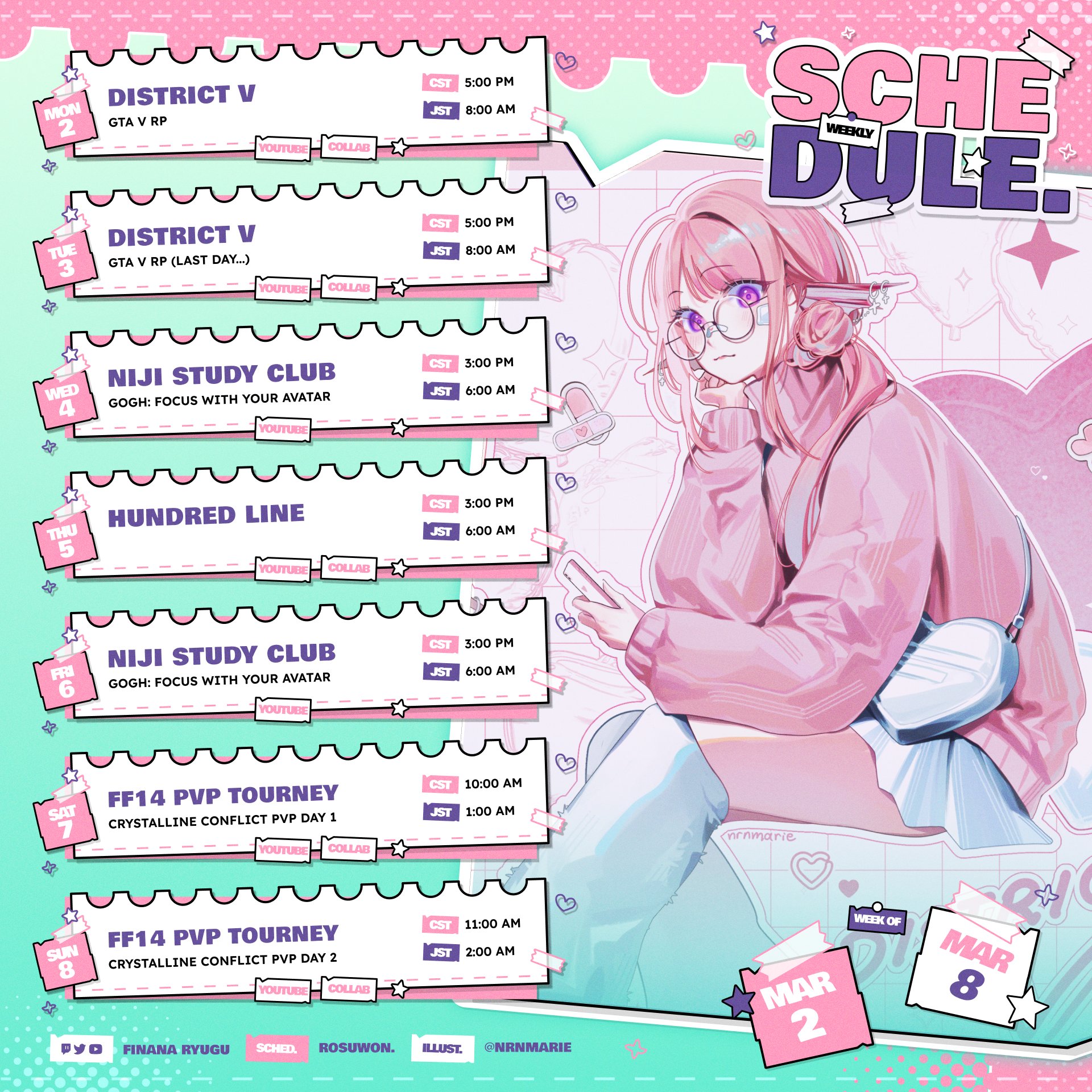 https://x.com/FinanaRyugu/status/2027848682528260103Feesh is in a PVP FFXIV tournament with Hazumi, Doppio, Vanta and Flayon on her team.