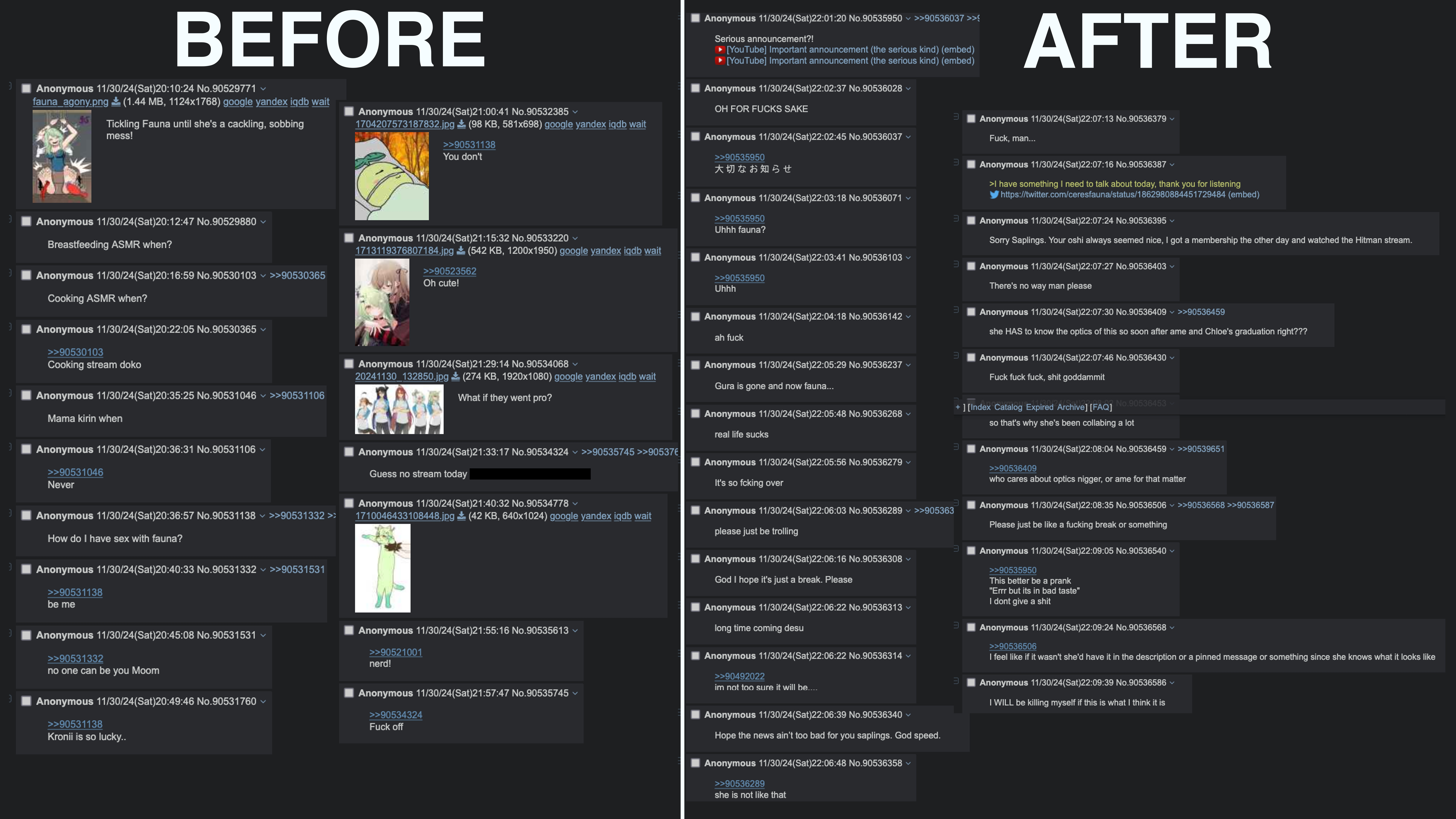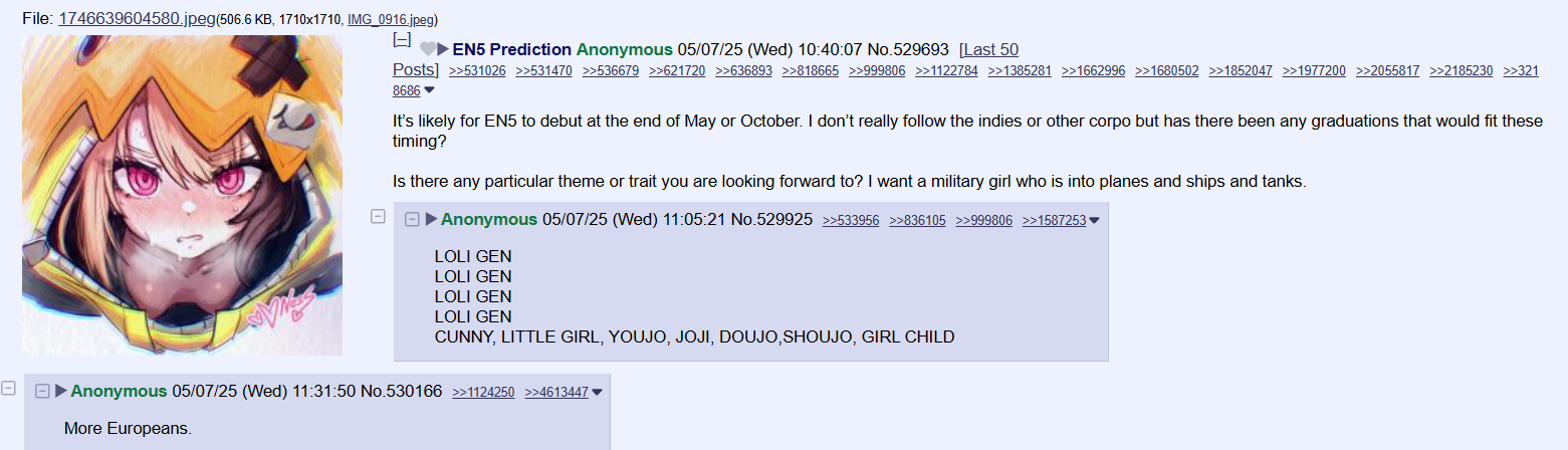 >>109834776The only splits that are months old are the splits that are dead on towa because they mostly post on in global or /vt/ (/gem/, /baubau/, /ope/, a few other splits would also be here if they hadn't rebaked recently), or dead JP generalsThe funniest thread still alive has to be this one though