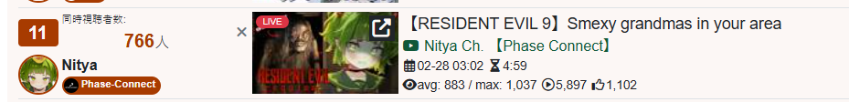 >brand new horror fotm>first in the company to stream the game>5kis the RE debuff or is it just shiori