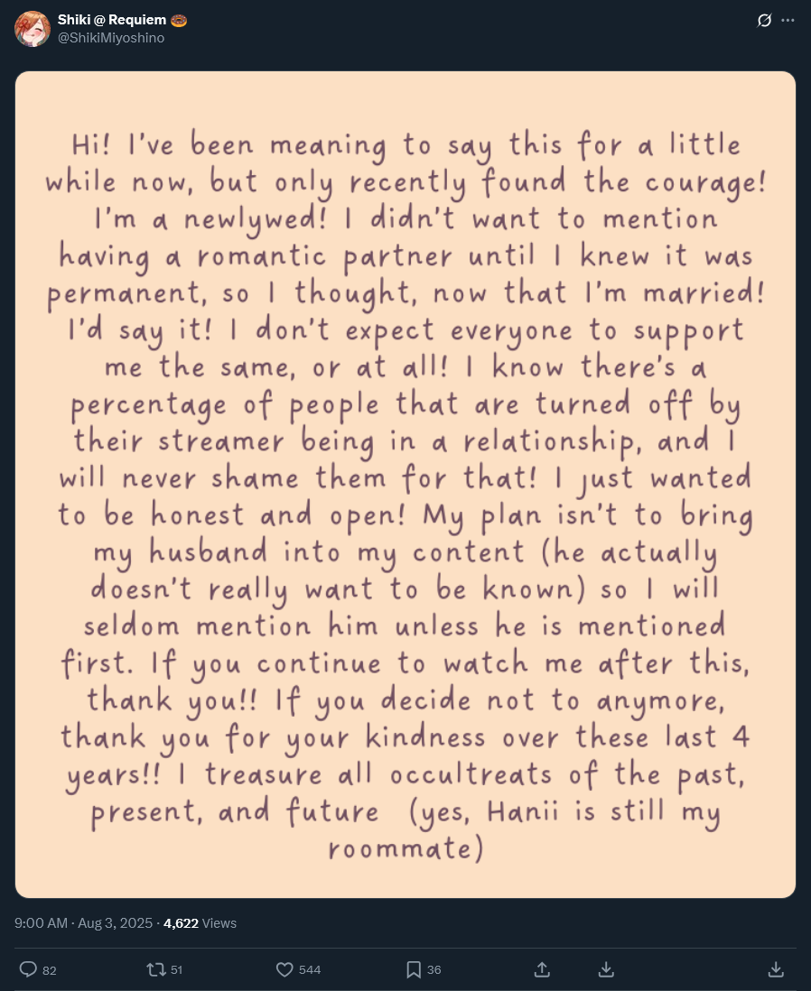 >>109836678This is why my oshi is betterShe will take breaks but be transparent about itand she always comes back