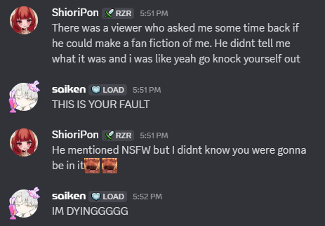 >>109838772Why is she interacting with saiken the sex pest in a discord server?