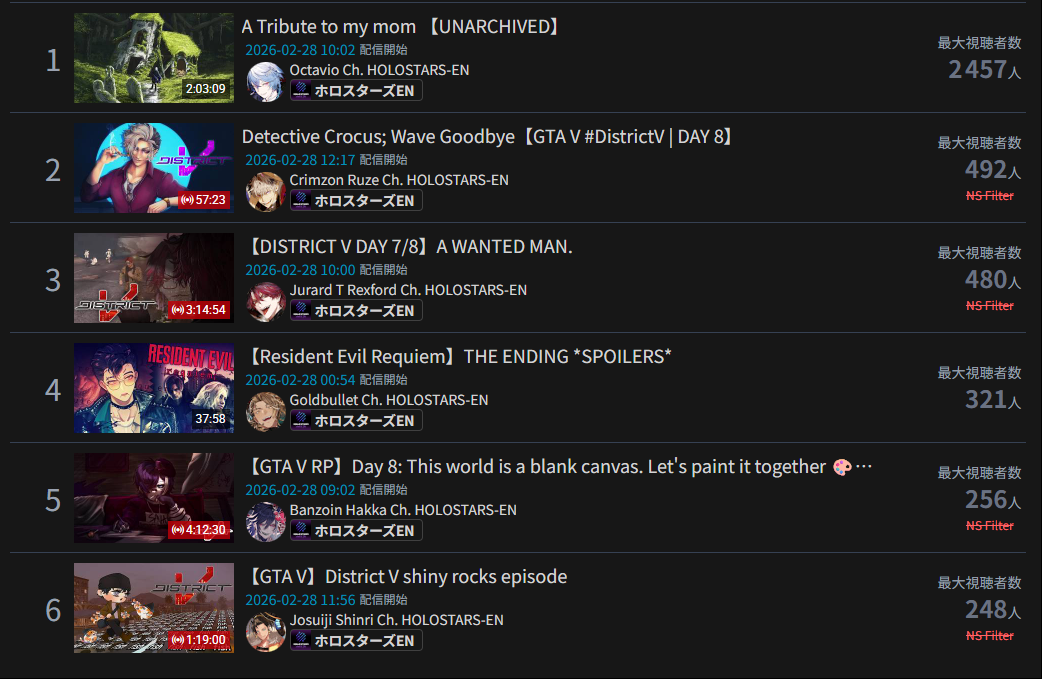 *GENERAL NUMBERFAG SITES*>https://playboard.co/en/>http://ikioi-ranking.com/>https://vrabi.net/>https://live-ranking.userlocal.jp/vtuber-rankingHololive sites>https://www.hololyzer.net/youtube/index.html>https://trackholo.live/en/>https://holo-spotify-stats.jirikunes.eu/Twitch>https://sullygnome.com/>https://twitchtracker.com/>https://stats.roki.sh/>https://streamscharts.com/