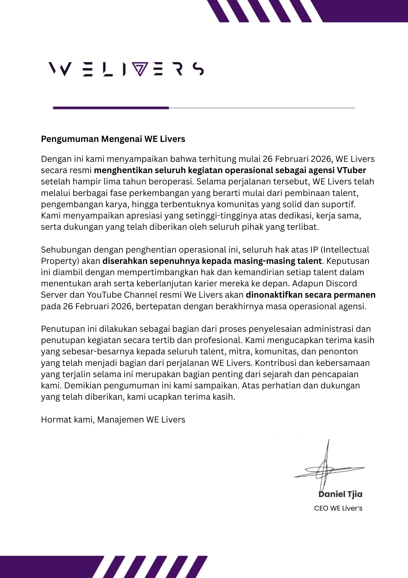 >>109845261We Livers announced their closure, with all of their assets are given to their remaining talents.https://x.com/we_liver/status/2026990639544406282On the continuation of talent activities, it is to the discretion of each members individually.