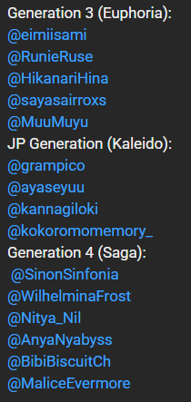 ▼ Phase Connect LinksOfficial Website: https://phase-connect.comOfficial Schedule: https://schedule.phase-connect.comOfficial Twitter: https://x.com/PhaseConnect | https://x.com/PhaseConnectJPOfficial Character References: https://rentry.org/pcgreferencesOfficial Twitch Archive Channels: https://rentry.org/pcgtwitcharchiveUnofficial Phase Connect Archives: https://rentry.org/pcgunofficialarchive––––––––––––––––––––––––––––––––––◆【Lia】https://x.com/rinkouashelia | https://youtube.com/RinkouAshelia | https://twitch.tv/asheliarinkou◆【Utatane Nasa】転寝ナサ (JP) https://x.com/UtataneNasa | https://youtube.com/UtataneNasa | https://twitch.tv/utatanenasa◆【Hakushika Iori】白鹿いおり (JP + EN) https://x.com/hakushikaiori | https://youtube.com/HakushikaIori | https://twitch.tv/iorihakushika◆【Fujikura Uruka】https://x.com/fujikurauruka | https://youtube.com/FujikuraUruka | https://twitch.tv/fujikurauruka◆【Shisui Michiru】紫翠みちる (JP) https://x.com/shisuimichiru | https://youtube.com/ShisuiMichiru | https://twitch.tv/michiru_shisui◆【Tenma Maemi】https://x.com/tenmamaemi | https://youtube.com/TenmaMaemi | https://twitch.tv/tenma◆【Pipkin Pippa】https://x.com/pipkinpippa | https://youtube.com/PipkinPippa | https://twitch.tv/pippa––––––––––––––––––––––––––––––––––◆【Kaneko Lumi】https://x.com/kaneko_lumi | https://youtube.com/KanekoLumi | https://twitch.tv/kanekolumi◆【Fuura Yuri】[Terminated] https://x.com/AmarisYuri | Archive: https://youtube.com/@TheNationalFuuraYuriArchive◆【Dizzy Dokuro】https://x.com/dizzydokuro | https://youtube.com/@dizzydokuro | https://twitch.tv/dizzydokuro◆【Jelly Hoshiumi】https://x.com/jellyhoshiumi | https://youtube.com/@jellyhoshiumi | https://twitch.tv/jellyhoshiumi◆【Ember Amane】https://x.com/emberamane | https://youtube.com/@EmberAmane | https://twitch.tv/emberamane◆【Clio Aite】https://x.com/ClioAite | https://youtube.com/@ClioAite | https://twitch.tv/clioaite◆【MariMari_en】https://x.com/MARIMARI_EN | https://youtube.com/@MARIMARI_EN | https://twitch.tv/marimari_en◆【Eepy Sleepy】https://x.com/EepySleepyCh | https://youtube.com/@EepySleepyCh | https://twitch.tv/EepySleepy––––––––––––––––––––––––––––––––––◆【Remilia Nephys】https://x.com/Remilia_Nephys | https://youtube.com/RemiliaNephys | https://twitch.tv/remilianephys◆【Chisaka Airi】https://x.com/ChisakaAiri | https://youtube.com/ChisakaAiri | https://twitch.tv/chisakaairi◆【Amanogawa Shiina】https://x.com/AmanogawaShiina | https://youtube.com/AmanogawaShiina | https://twitch.tv/amanogawashiina◆【Himemiya Rie】https://x.com/HimemiyaRie | https://youtube.com/HimemiyaRie | https://twitch.tv/himemiyarie◆【Erina Makina】https://x.com/ErinaMakina | https://youtube.com/ErinaMakina | https://twitch.tv/erinamakina◆【Komachi Panko】https://x.com/komachipanko | https://youtube.com/KomachiPanko | https://twitch.tv/komachipanko––––––––––––––––––––––––––––––––––◆【Runie Ruse】https://x.com/RunieRuse | https://youtube.com/@RunieRuse | https://twitch.tv/RunieRuse◆【Eimi Isami】https://x.com/eimiisami | https://youtube.com/@eimiisami | https://twitch.tv/eimiisami◆【Muu Muyu】https://x.com/Muu_Muyu | https://youtube.com/@MuuMuyu | https://twitch.tv/MuuMuyu◆【Hikanari Hina】https://x.com/HikanariHina | https://youtube.com/@HikanariHina | https://twitch.tv/HikanariHina◆【Saya Sairroxs】[Phase Citizen] https://x.com/sayasairroxs | https://youtube.com/@sayasairroxs | https://twitch.tv/sayasairroxs––––––––––––––––––––––––––––––––––◆【Kannagi Loki】巫ロキ (JP) https://x.com/kannagiloki | https://youtube.com/@kannagiloki ◆【Kokoromo Memory】[Phase Citizen] https://x.com/kokoromomemory | https://youtube.com/@kokoromomemory_ | https://twitch.tv/kokoromomemory◆【Gram Pico】倉夢ぴこ (JP) https://x.com/grampico_ | https://youtube.com/@grampico | https://twitch.tv/grampico◆【Ayase Yuu】絢世ユウ (JP) https://x.com/ayaseyuuu | https://youtube.com/@ayaseyuu | https://twitch.tv/ayaseyuu_◆【Kaminari Clara】[Graduated] https://x.com/kaminariclara_ | https://youtube.com/@kaminariclara | https://twitch.tv/kaminariclara––––––––––––––––––––––––––––––––––◆【Malice Evermore】https://x.com/MaliceEvermore | https://youtube.com/@maliceevermore | https://twitch.tv/maliceevermore◆【Nitya Nil】https://x.com/Nitya_Nil | https://youtube.com/@Nitya_Nil | https://twitch.tv/nitya_nil◆【Wilhelmina Frost】https://x.com/wilhelminafr0st | https://youtube.com/@wilhelminafrost | https://twitch.tv/wilhelminafrost◆【Bibi Biscuit】https://x.com/BibiBiscuitCh | https://youtube.com/@bibibiscuitch | https://twitch.tv/bibibiscuitch◆【Anya Nyabyss】https://x.com/AnyaNyabyss | https://youtube.com/@AnyaNyabyss | https://twitch.tv/anyanyabyss◆【Sinon Sinfonia】https://x.com/SinonSinfonia | https://youtube.com/@SinonSinfonia | https://twitch.tv/sinonsinfoniaPrevious Thread: >>109842787