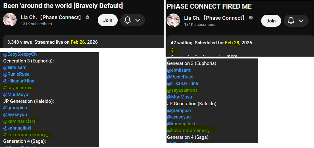 specifically what was Clara's relationship to these talents, and how did they react to her graduation?>Pippa>Tenma>Lia>Uruka>Lumi>Shiina>Dizzyimo these are the talents that are more or less the pulse of Phase Connect. so if she didn't really fuck with most of them, then she was right in identifying she never fit