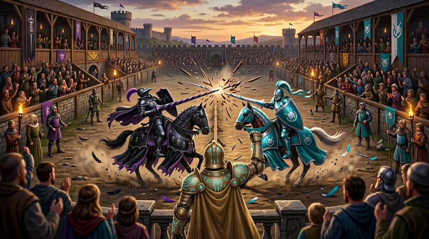 Starting on the Left SideSLAUGHTERSir Theodoric pierced Sir Wei directly through the eye, ripping Sir Wei off his horse. 3-0 for PeoSir Theodoric advances to the next round.