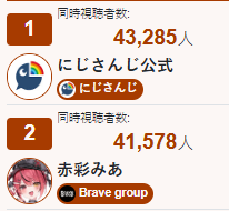 Akairo needs about 2k more to mogging all Holos, VSPOs, Nijis, her own shishou and have the biggest individual frame at this time slot.