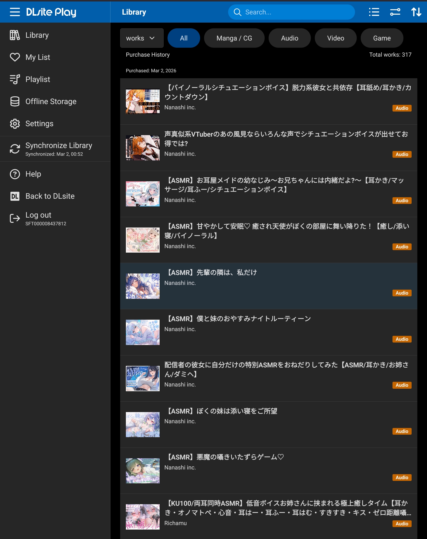 >>109883560It's literally his purchased list on DLsite? Are you retarded?