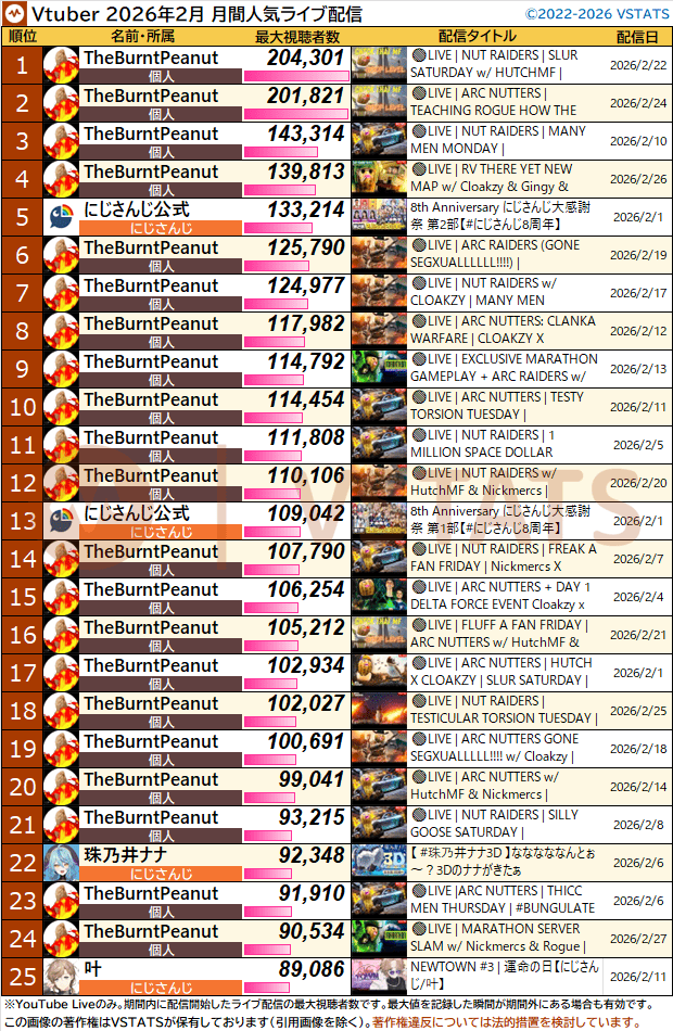 >>109883574MAR 2026 EN BRONZE3/1 - IRyS - Black Mesa: 6,862PER COMPANY1x: Hololive EnglishPER STREAMER1x: IRyS