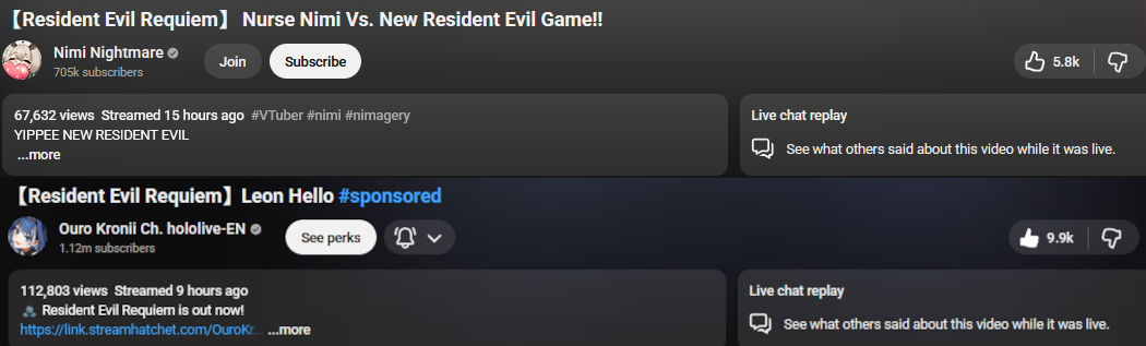 >>109882793I remember when RE4 remake came out Capcom let the boys have a few sponsorship links, but not one for Irys who had to use the boys
